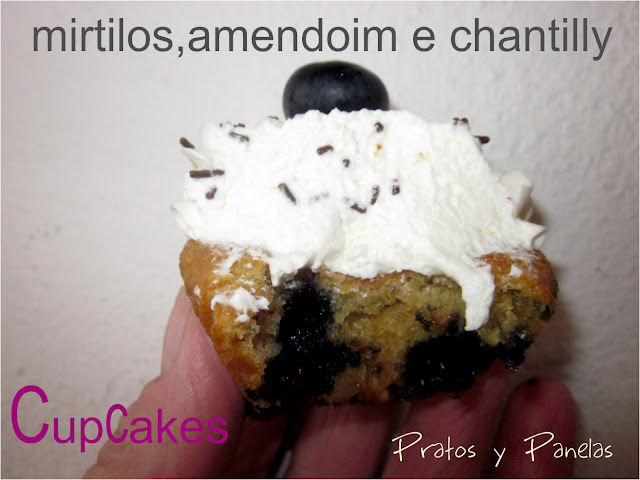 Cupcakes de Mirtilos,Amendoim e Chantilly