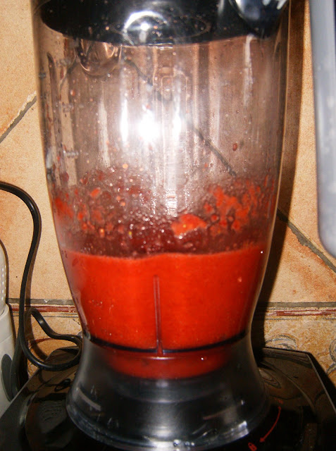 Para fazer a calda colocar os morangos e o açúcar no liquidificador e liquidificar,de seguida colocar a calda no frigorífico até ao momento de servir.